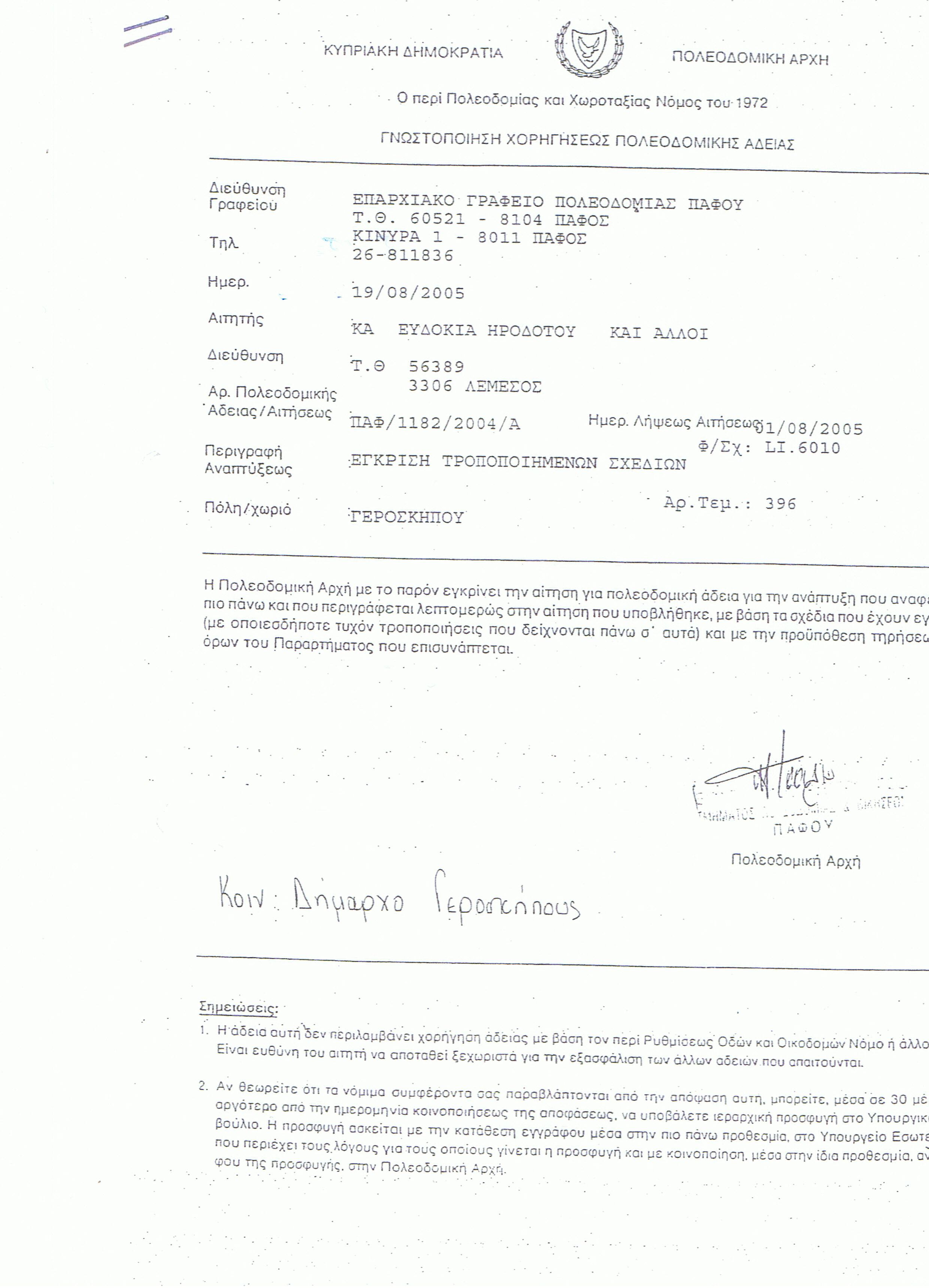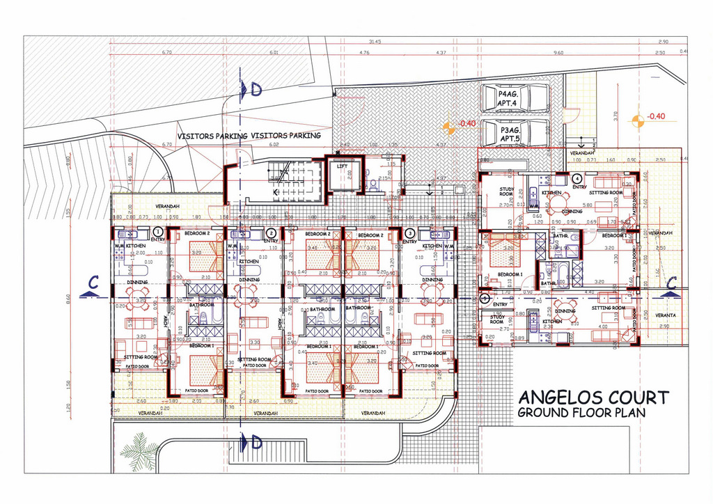 Angelos Court. " Apartment No. 001 Excl. VAT space of apartment with two bedrooms: 63.90 sq.m. verandah Area: 1) 13.10 sq.m, 2) 13.40 sqm water heating with solar batteries built-in the heater a/c Tel. line, antenna.